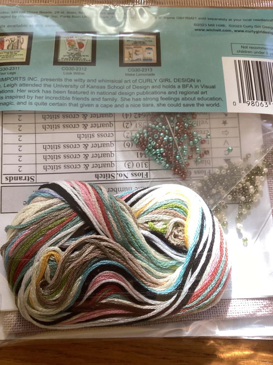 Kit Includes: Beads, 28 count linen, threads, needles, chart and instructions.