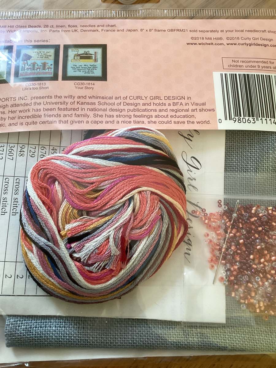 Kit contains – 28 count Grey/Twilight Blue linen, Mill Hill beads, threads, needles and chart.
