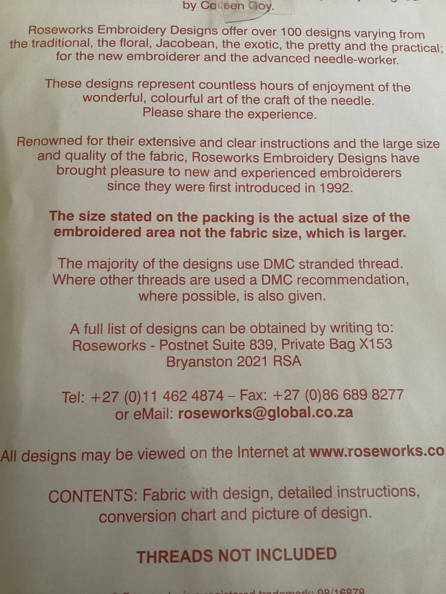 9cm x 12 cm printed design on cream fabric. (Panel only)
