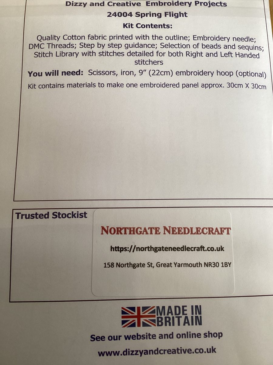 NEW! SPRING FLIGHT Embroidery Kit – Dizzy and Creative
